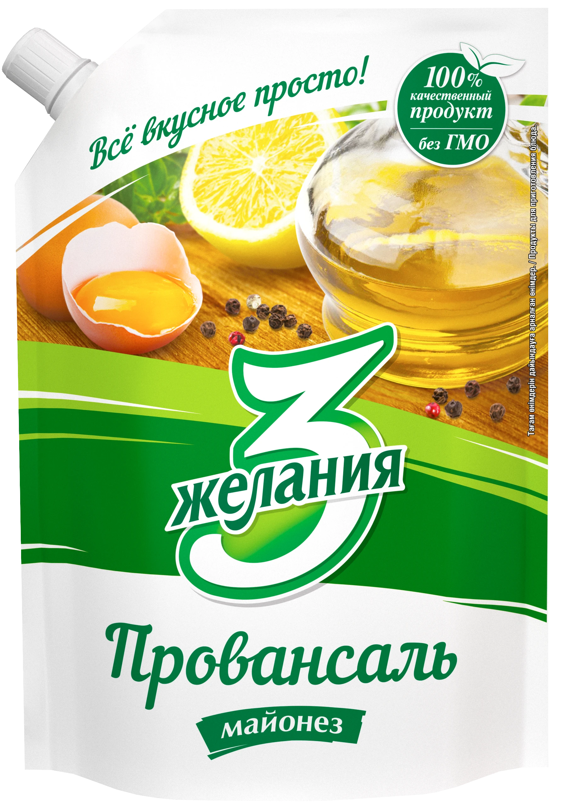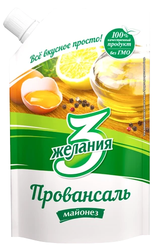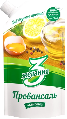 Жирность 57%. Приготовлен по классической рецептуре майонеза "Провансаль" из ингредиентов высокого качества с уменьшенным содержанием растительного масла и, соответственно, более низкой калорийностью. Обладает нежным, насыщенным, сбалансированным вкусом и густой сметанообразной консистенцией. Не содержит ГМО.