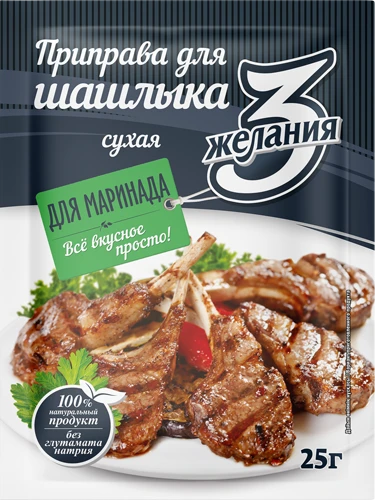 Комбинация натуральных пряностей и овощей для приготовления сочного и ароматного шашлыка. В составе кориандр и мускатный орех для глубокого, в меру терпкого вкуса, а смесь перцев и зелени для придания легкой остроты и яркого аромата. Не содержит глутамата натрия и ГМО.