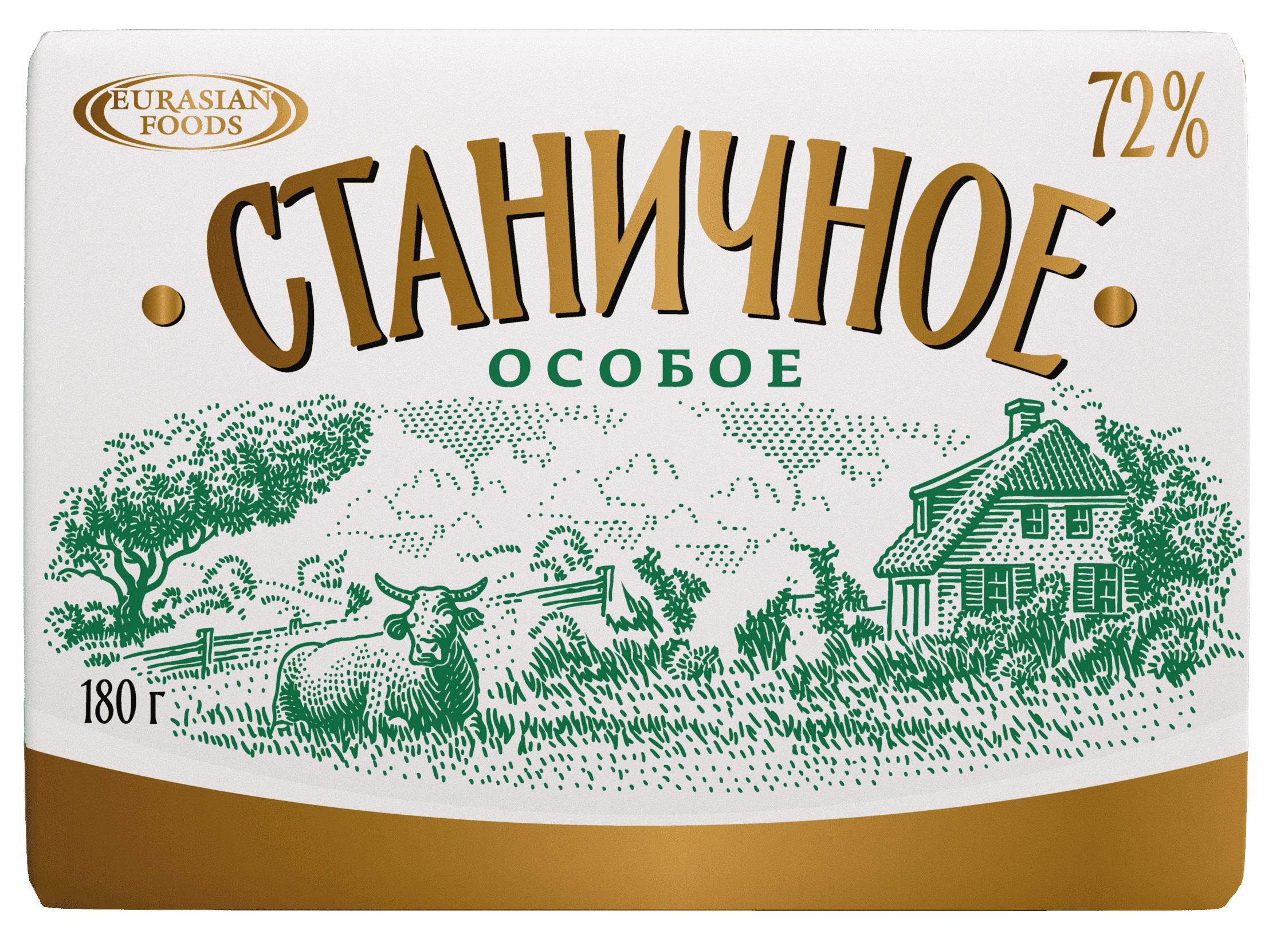 Жирность 72%. Продукт с чистым сливочным вкусом. Благодаря оптимальному сочетанию молочных и растительных жиров и пластичной, нежной консистенции - универсален в применении. Легко намазывается на хлеб, даже в охлажденном виде. Обогащен полиненасыщенными жирными кислотами. Не содержит трансизомеры жирных кислот.